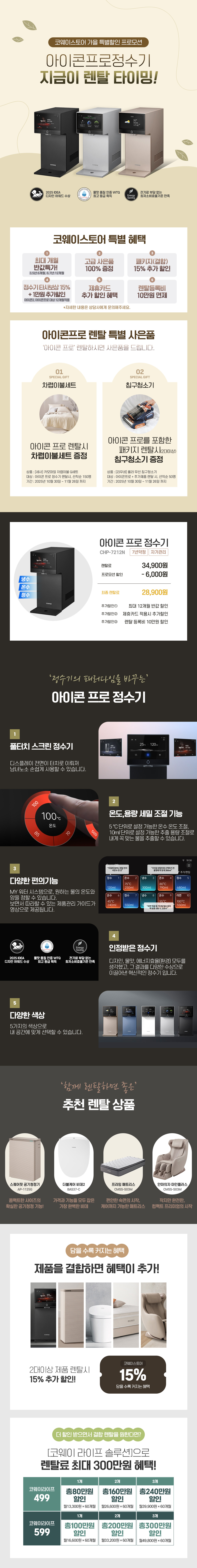 - 1. 본 제도는 렌탈 등 회사가 정한 기준의 고객이 렌탈 시 적용되며, 연체 또는 렌탈등록비 관련 타 할인 중복 적용은 불가합니다.